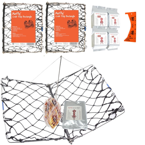 AirFly Castable Crab Snare for Dungeness, Rock and Blue Crab, 2pcs + AirFly Squid Baits, 2pcs