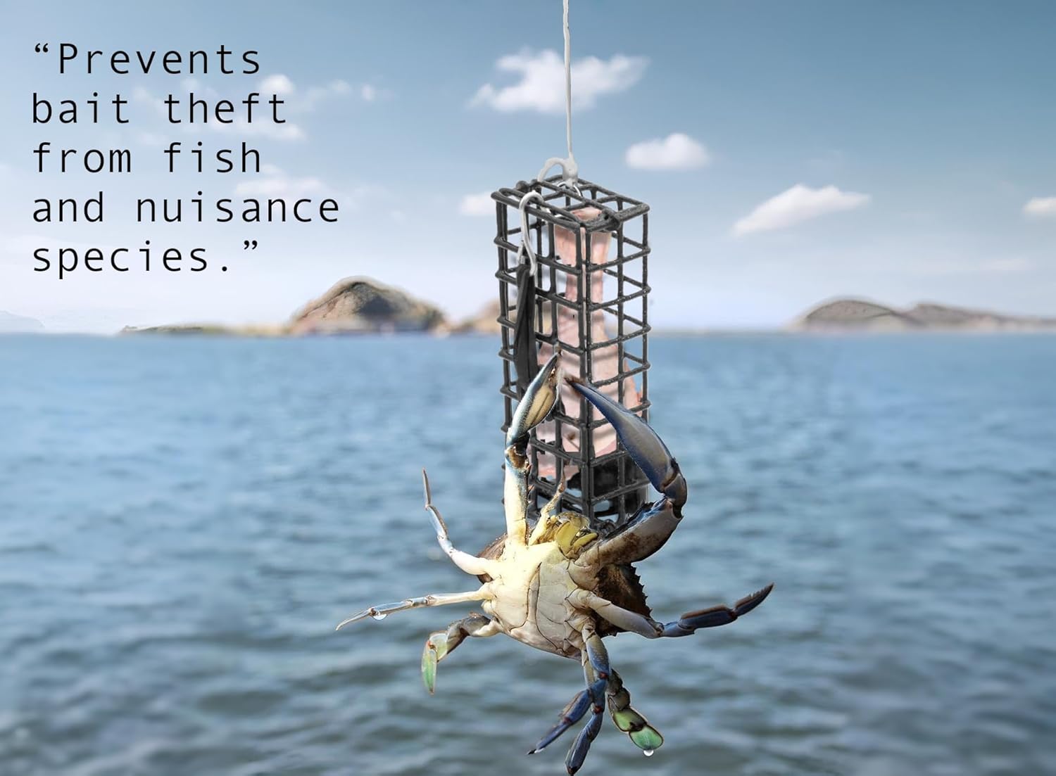 - ✅ 【Compact & Portable】 – Measuring just 4”x2”x1” and weighing 5oz, this bait cage is easy to carry and fits seamlessly into most crab traps.