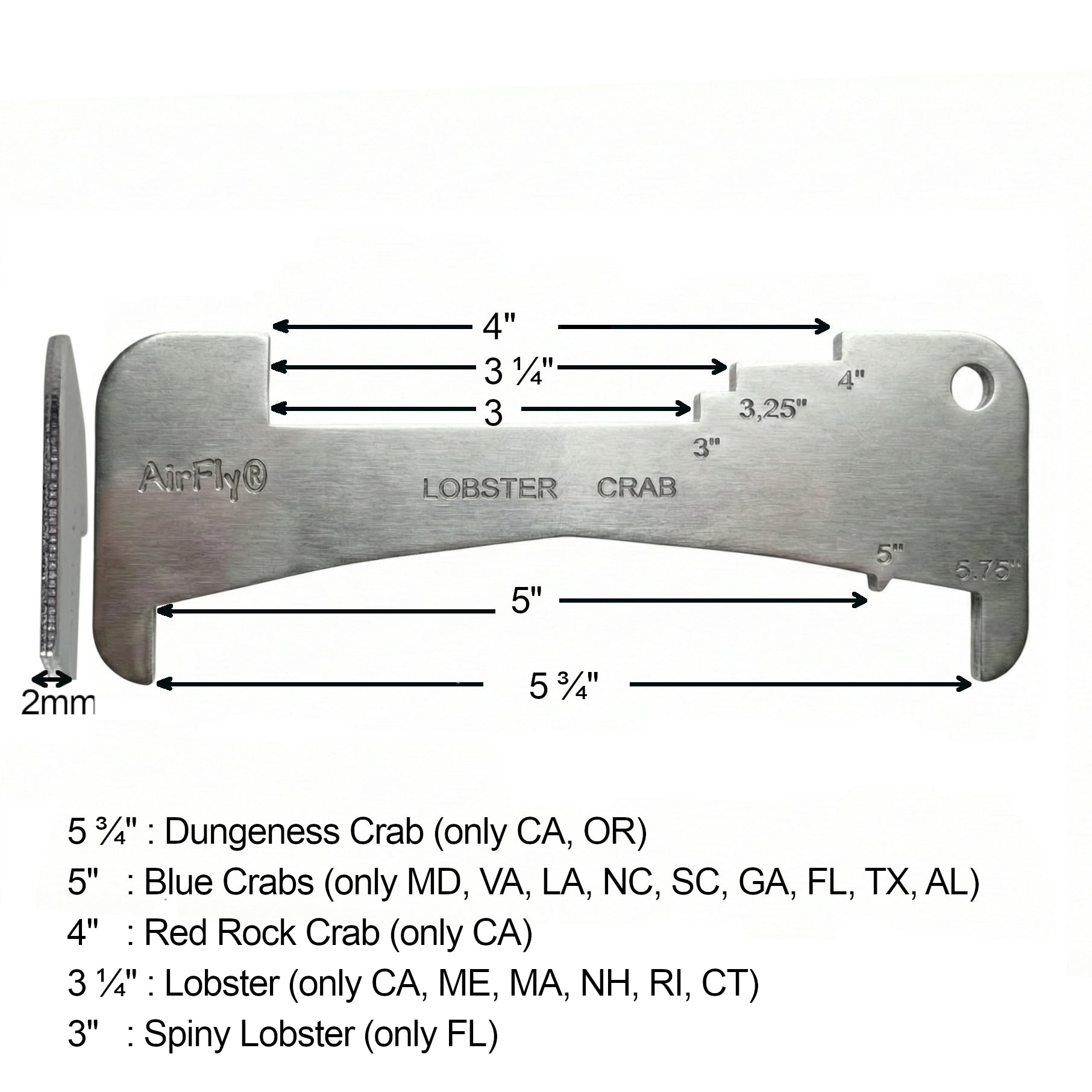 AirFly Aluminum Crab & Lobster Gauge – All-in-One Measuring Tool for Dungeness, Blue, Rock Crab & Lobster (3” to 5-3/4”) – Rust-Resistant Ruler for CA, East Coast, Gulf & Canada – Designed in USA