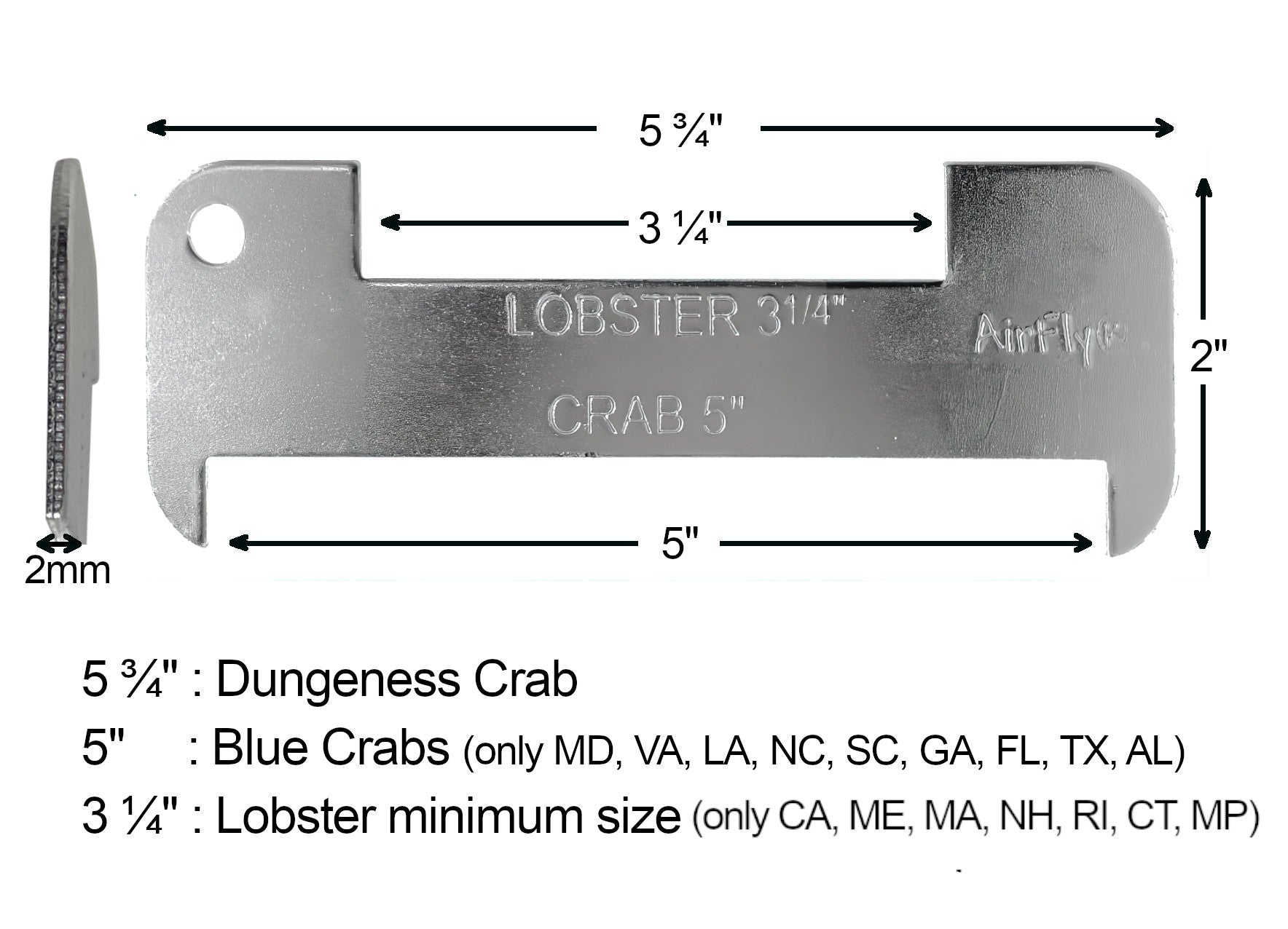 AirFly Aluminum Lobster and Blue Crab Gauge for California, Maine, MA, NH, RI, CT, MP, AL, FL, GA, MD, VA, NC, SC, LA, TX, Canada, 5", 3 1/4"